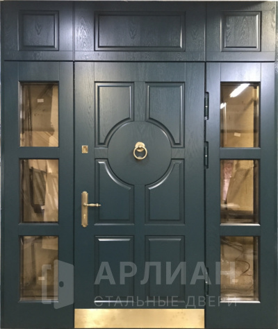 Металлическая входная дверь в коттедж с верхней фрамугой №10