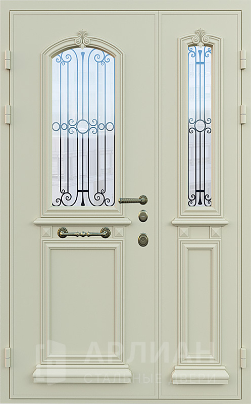 Металлическая двухстворчатая дверь с декоративными панелями №2