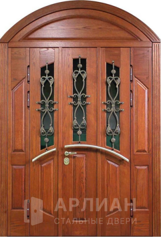 Высокая арочная дверь с фрамугой и кованой решеткой №12
